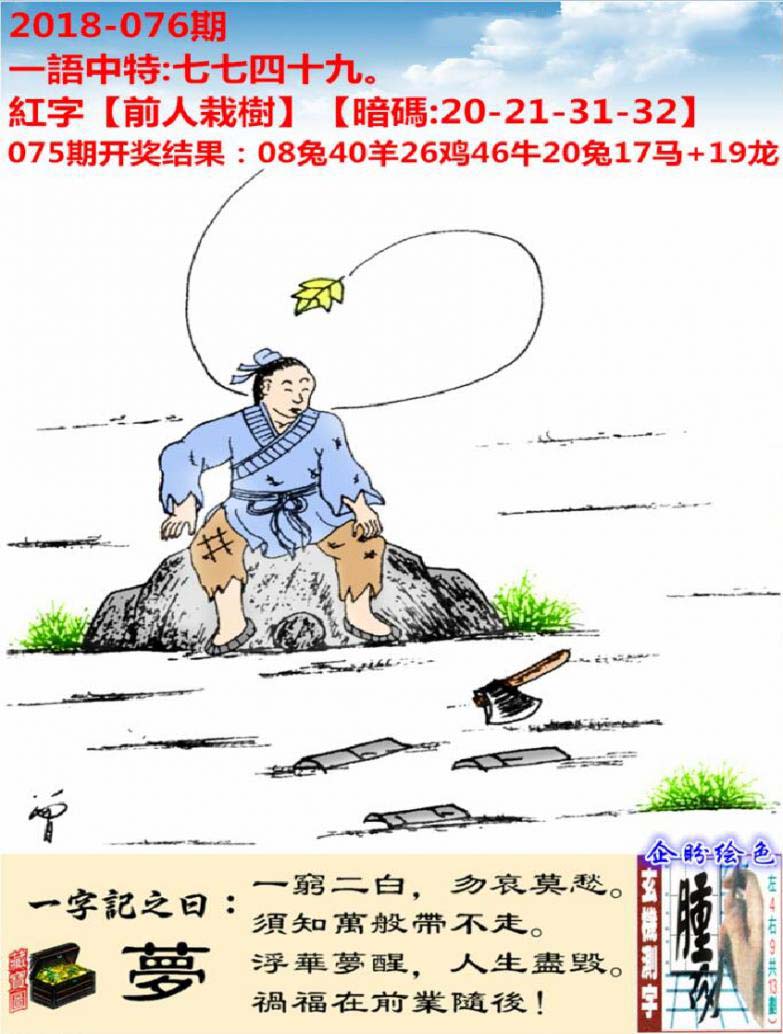 主题 : 076期:新版跑狗一字記之曰【夢】玄機測字《腫》
