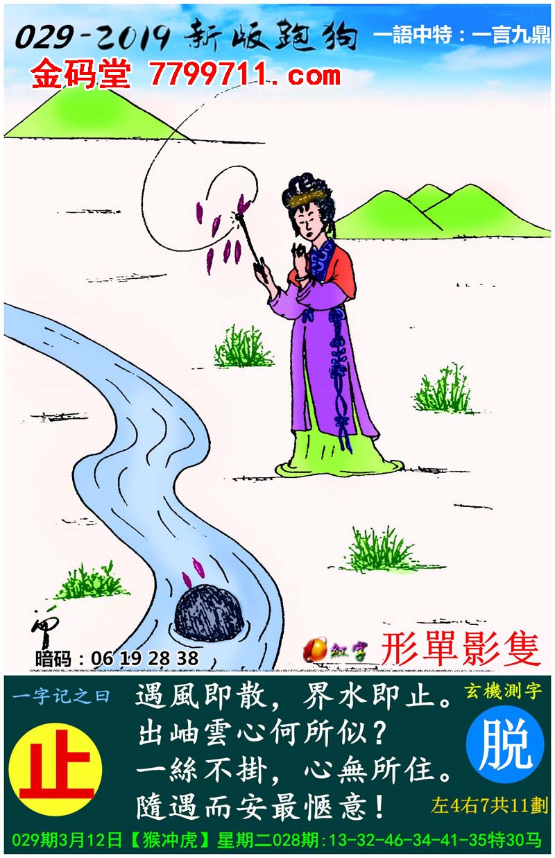 029期:新版跑狗一字記之曰【止】玄機測字:《脱》