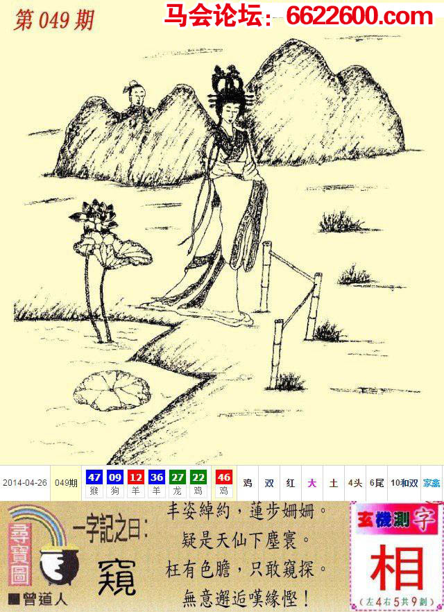 主题 : 123期:新版跑狗一字記之曰【窺】玄機測字:《取》