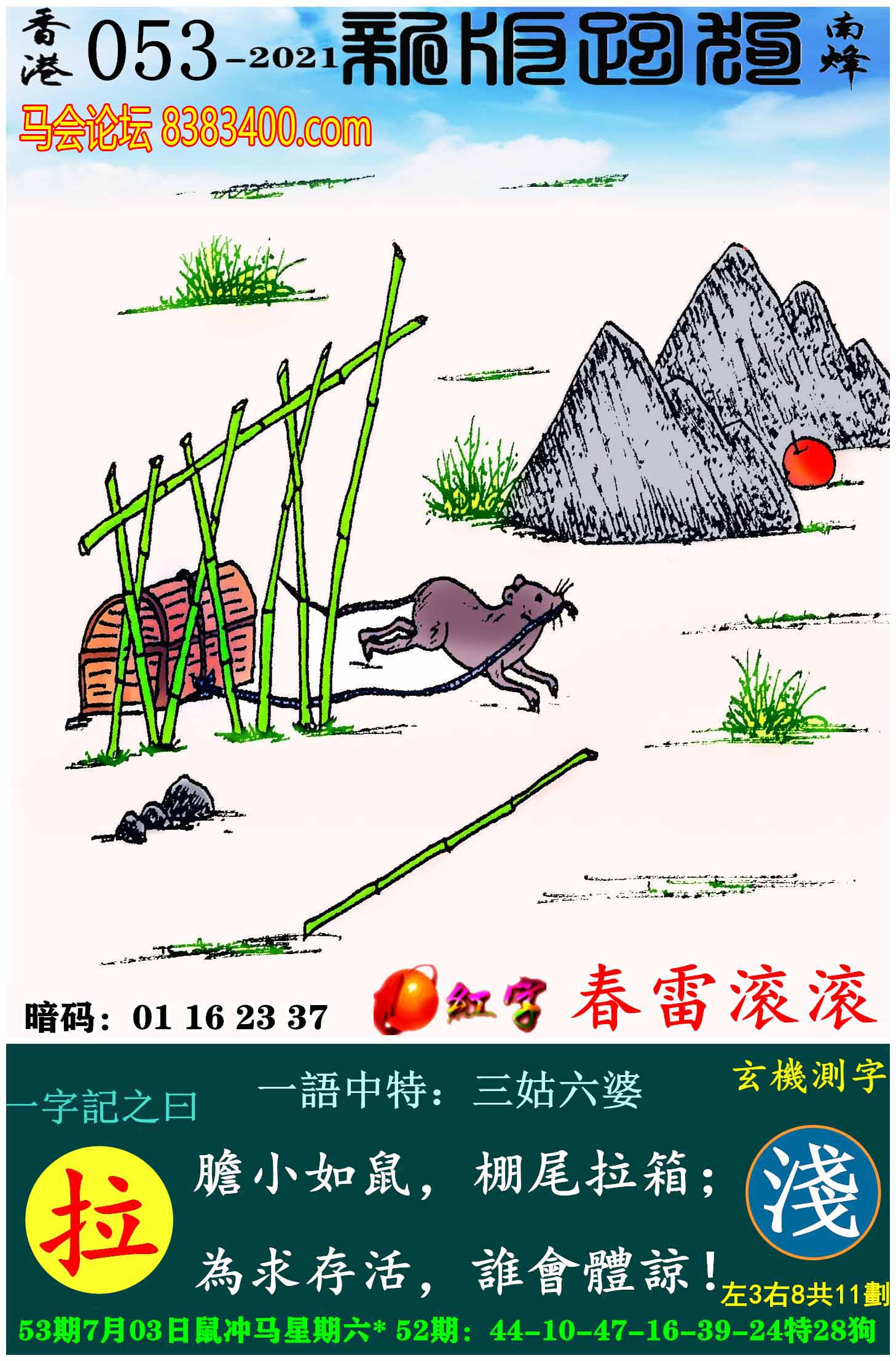 053期:新版跑狗一字記之曰【拉】玄機測字:《淺》