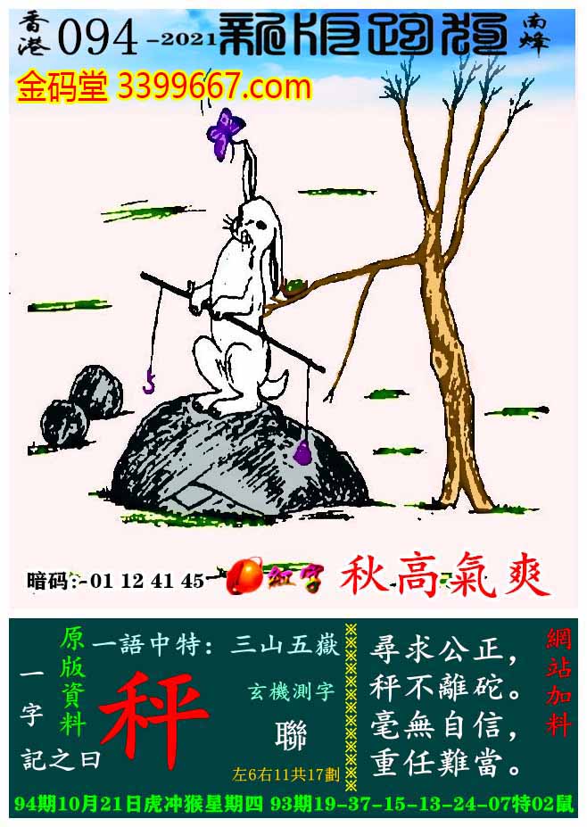 主题 : 094期:新版跑狗一字記之曰【秤】玄機測字:《聯》