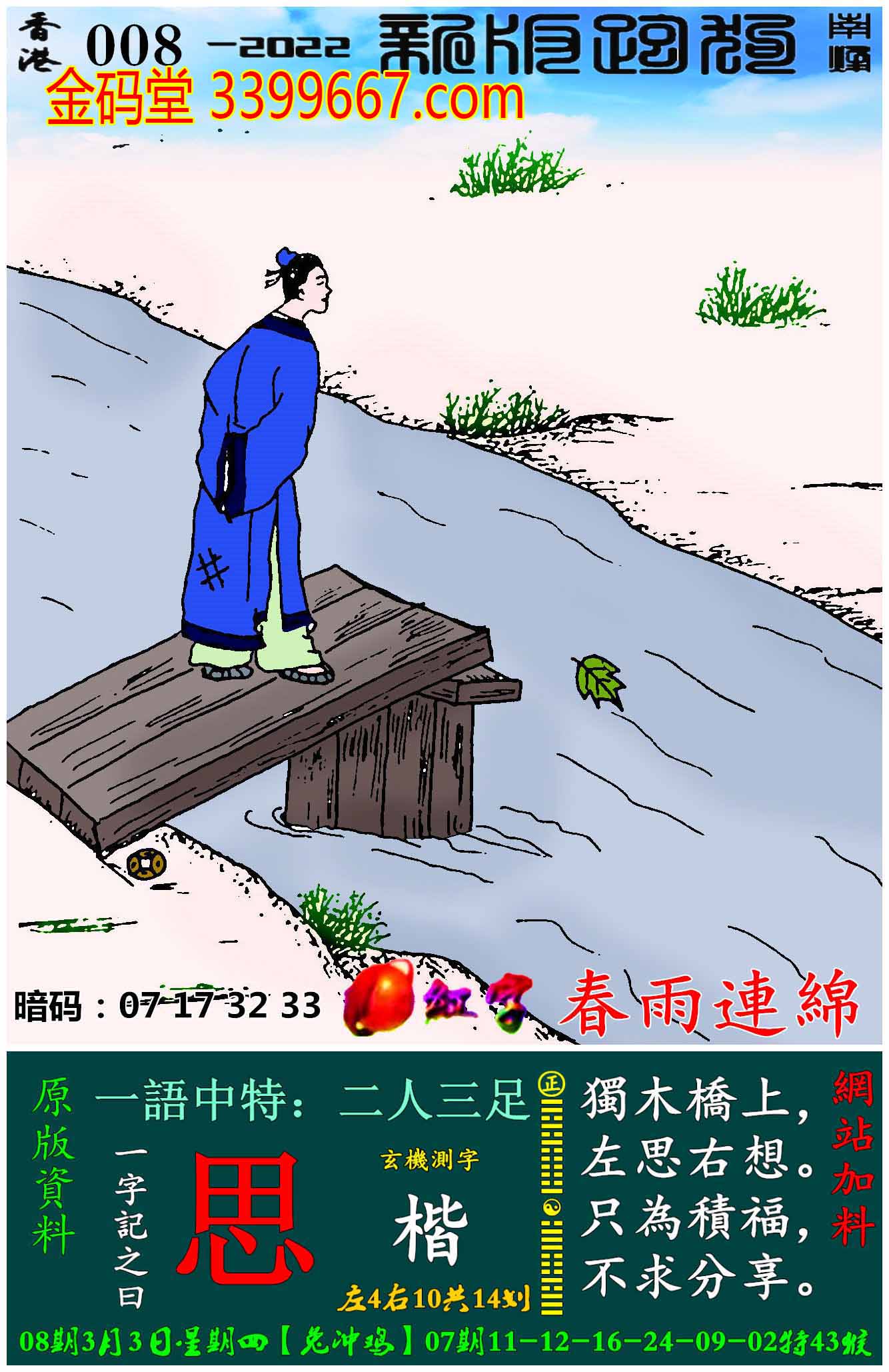 008期:新版跑狗一字記之曰【思】玄機測字:《楷》