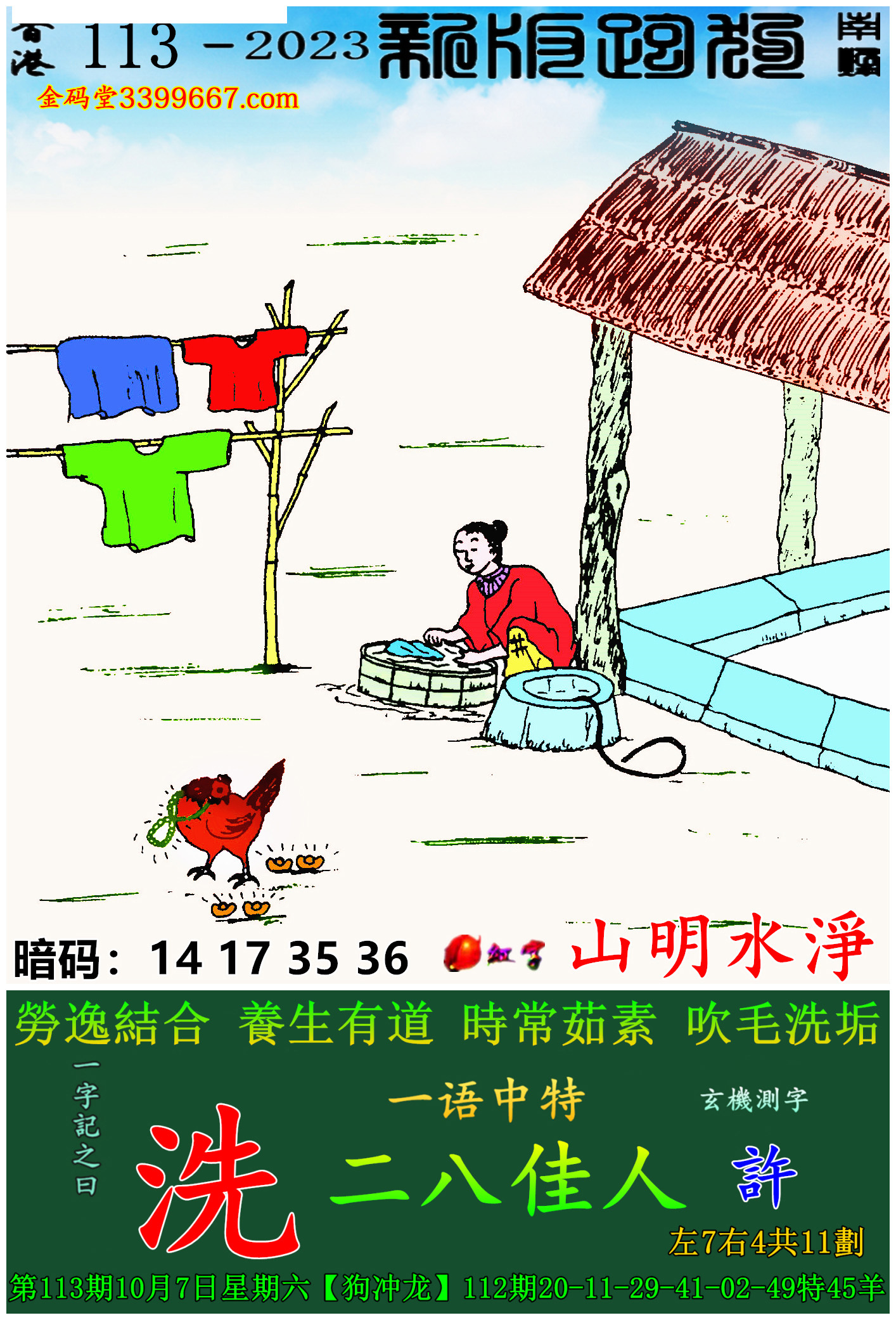 113期新版跑狗一字記之曰:【洗】