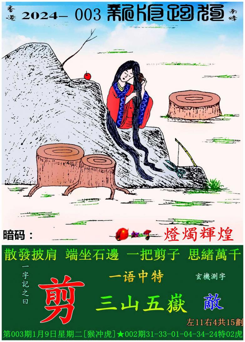 003期新版跑狗一字記之曰:【剪】