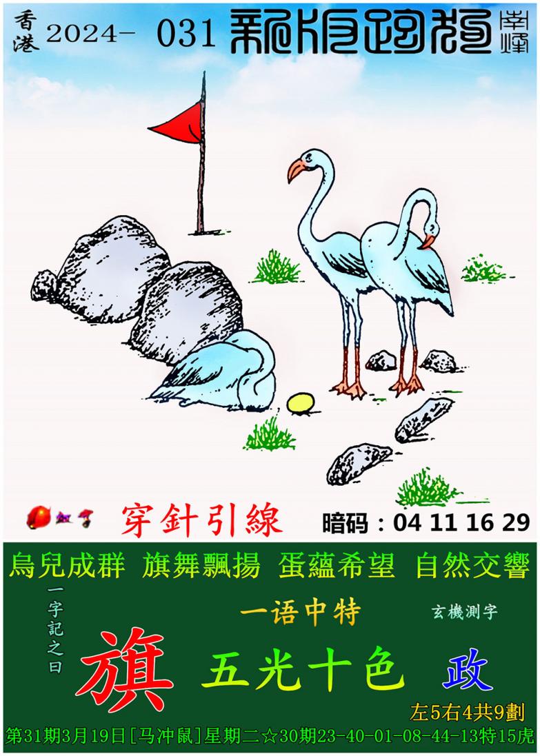 031期新版跑狗一字記之曰:【旗】