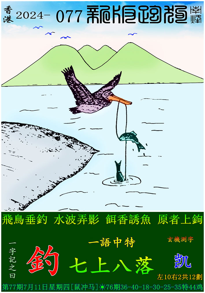 主题 : 077期:新版跑狗一字記之曰【釣】 玄機測字:【凯】