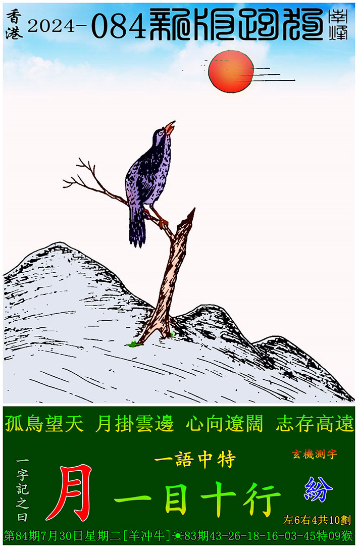 084期:新版跑狗一字記之曰【月】 玄機測字:【紛】