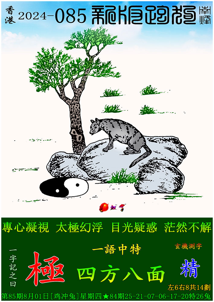 085期:新版跑狗一字記之曰【極】 玄機測字:【精】