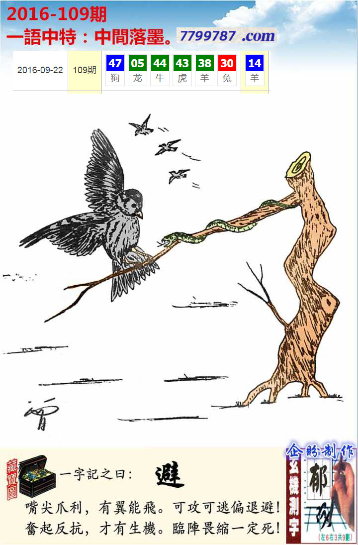 主题 : 096期:新版跑狗一字記之曰【嚇】 玄機測字:【深】