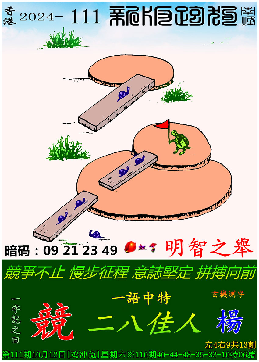 111期:新版跑狗一字記之曰【競】 玄機測字:【楊】