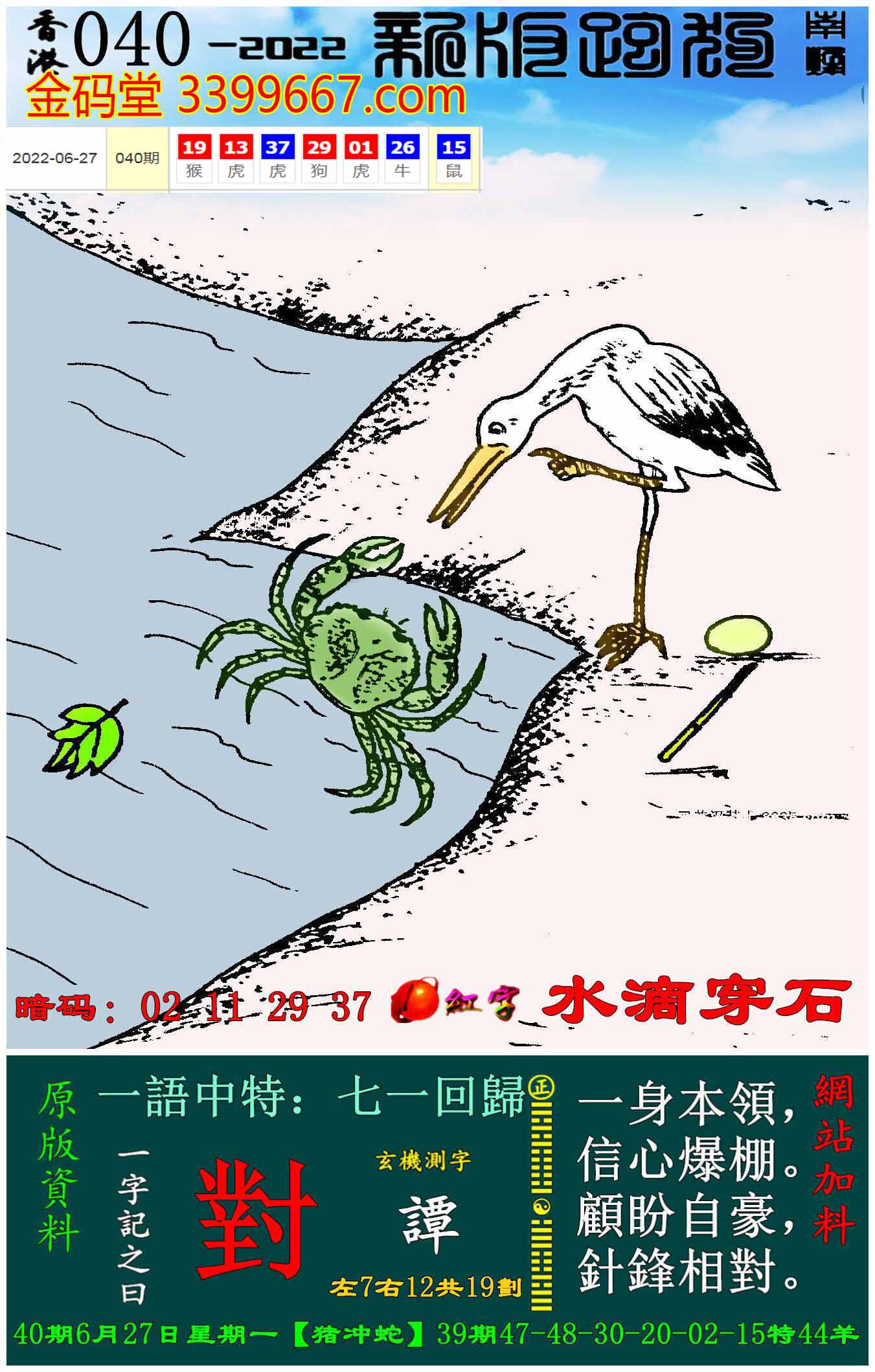 110期新版跑狗一字記之曰:【對】