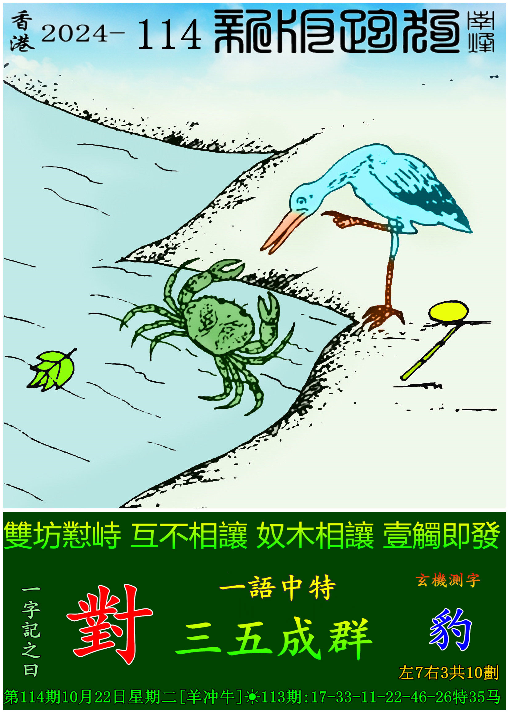 主题 : 114期:新版跑狗一字記之曰【對】 玄機測字:【豹】