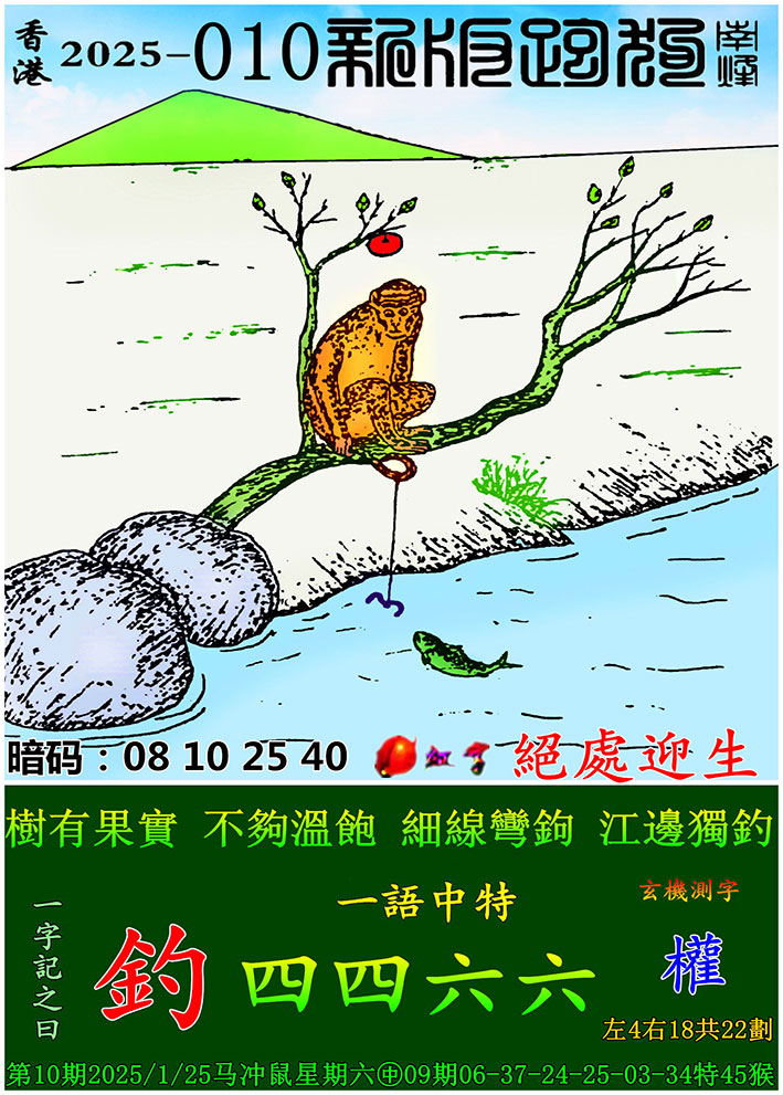 010期新版跑狗一字記之曰:【釣】