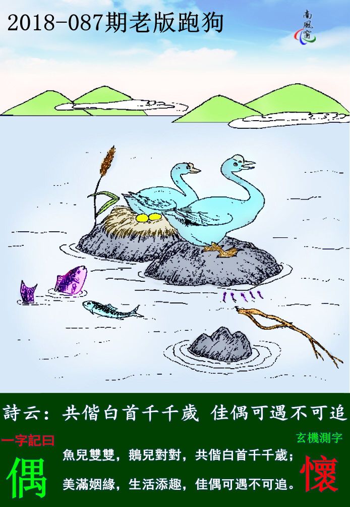 主题 : 087期:老版跑狗一字記之曰:【偶】玄機測字《懷》