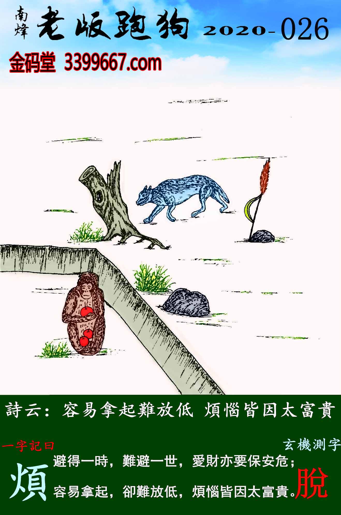 主题 : 026期老版跑狗一字記之曰:【煩】玄機測字:《脫》