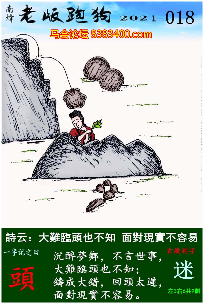 主题 : 018期老版跑狗一字記之曰:【頭】玄機測字:《迷》
