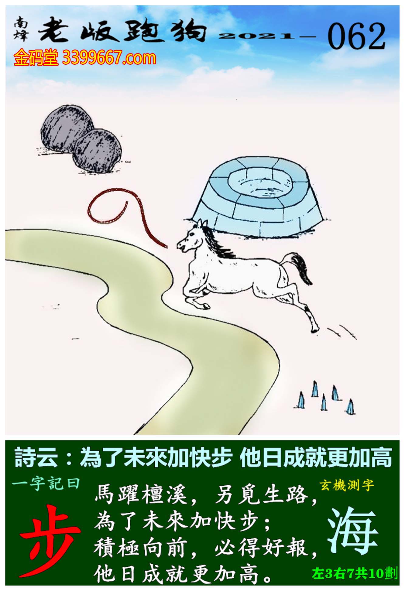 062期老版跑狗一字記之曰:【步】玄機測字:《海》
