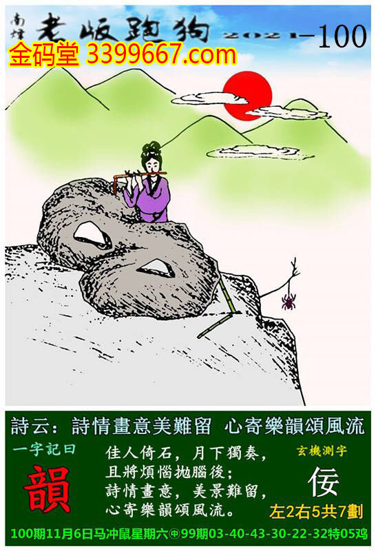 100期老版跑狗一字記之曰:【韻】