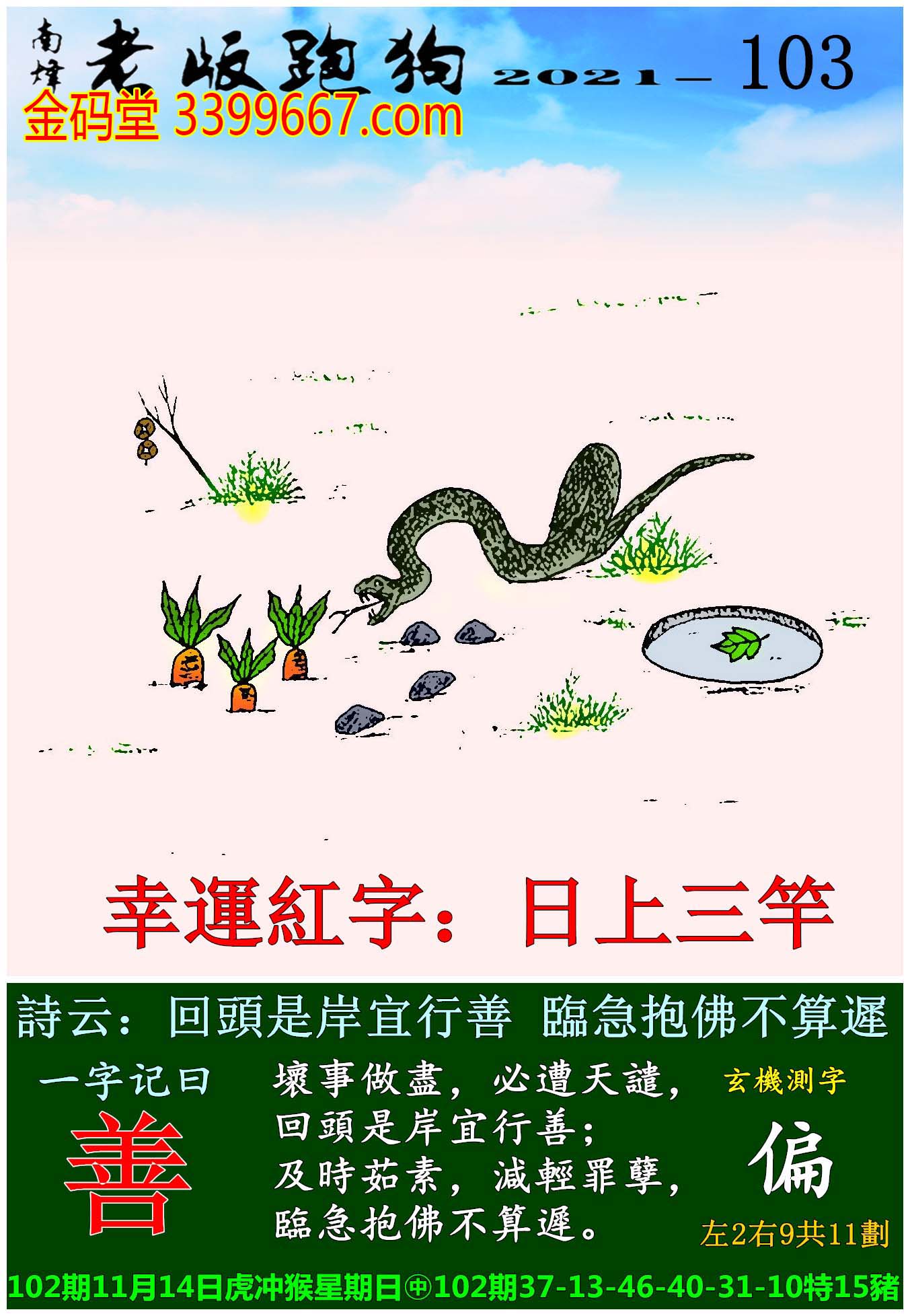103期老版跑狗一字記之曰:【善】