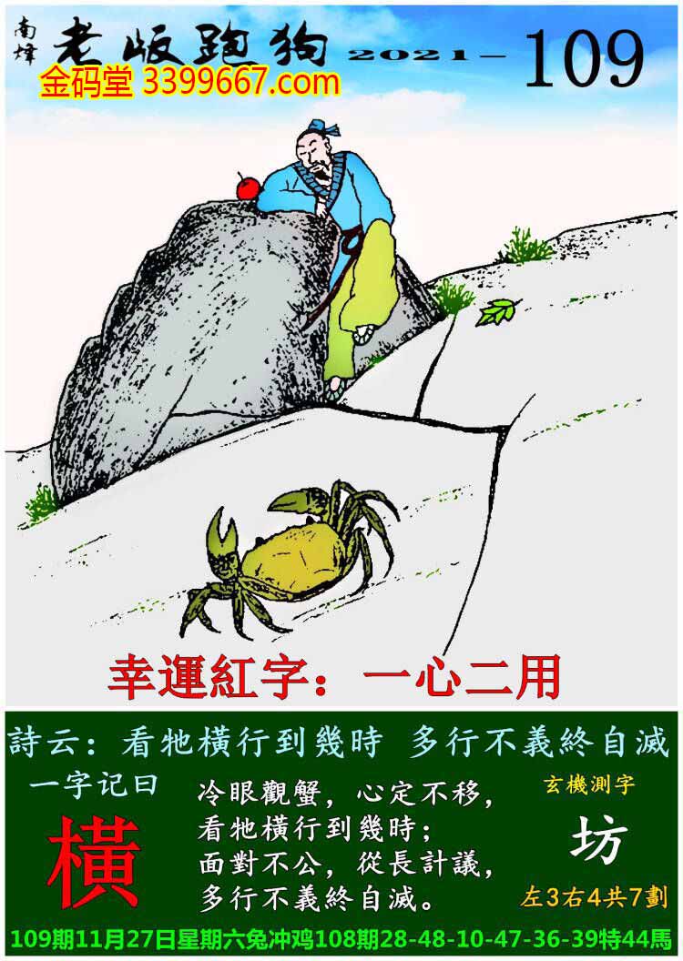 109期老版跑狗一字記之曰:【橫】