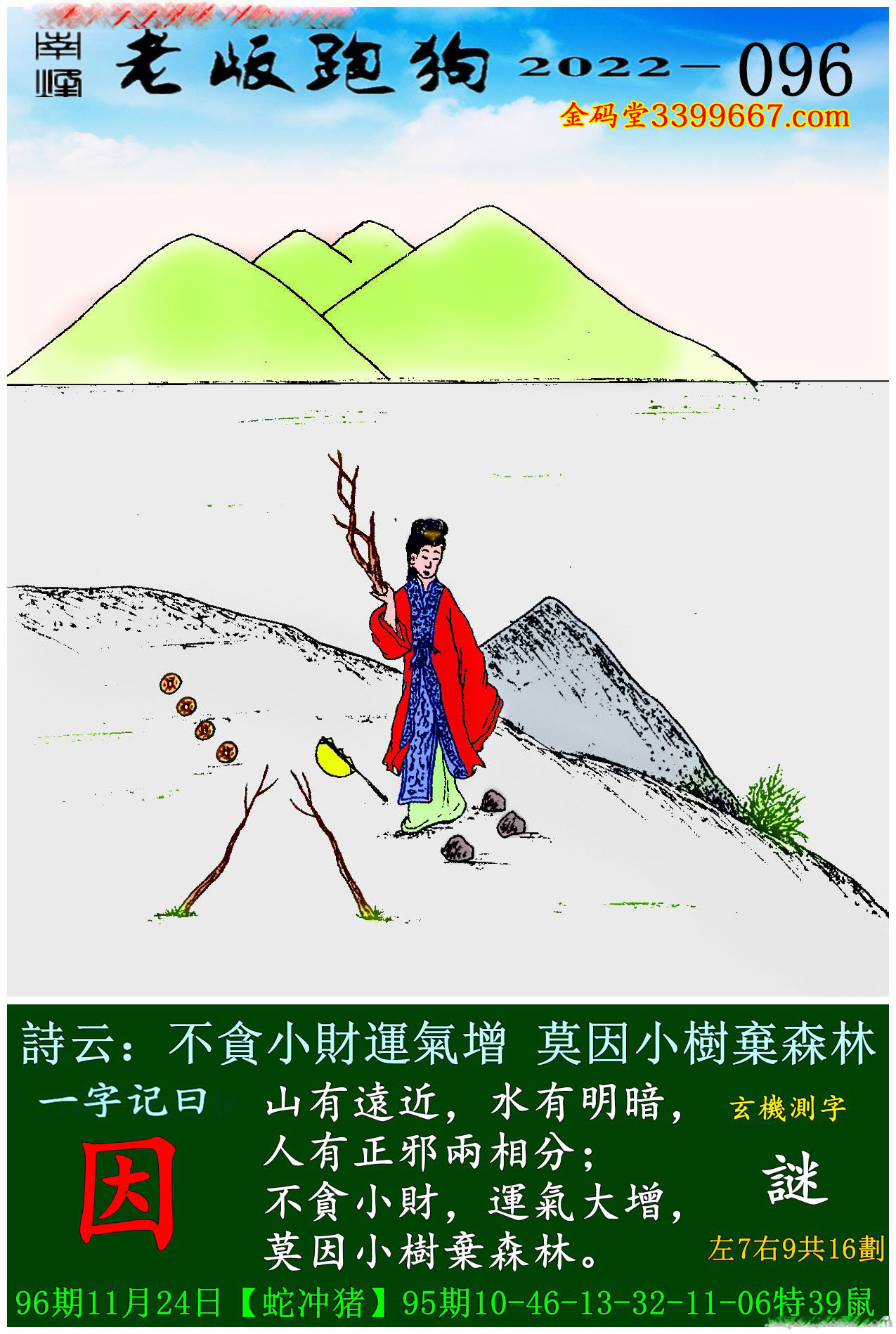 主题 : 096期老版跑狗一字記之曰:【因】玄機測字:《謎》
