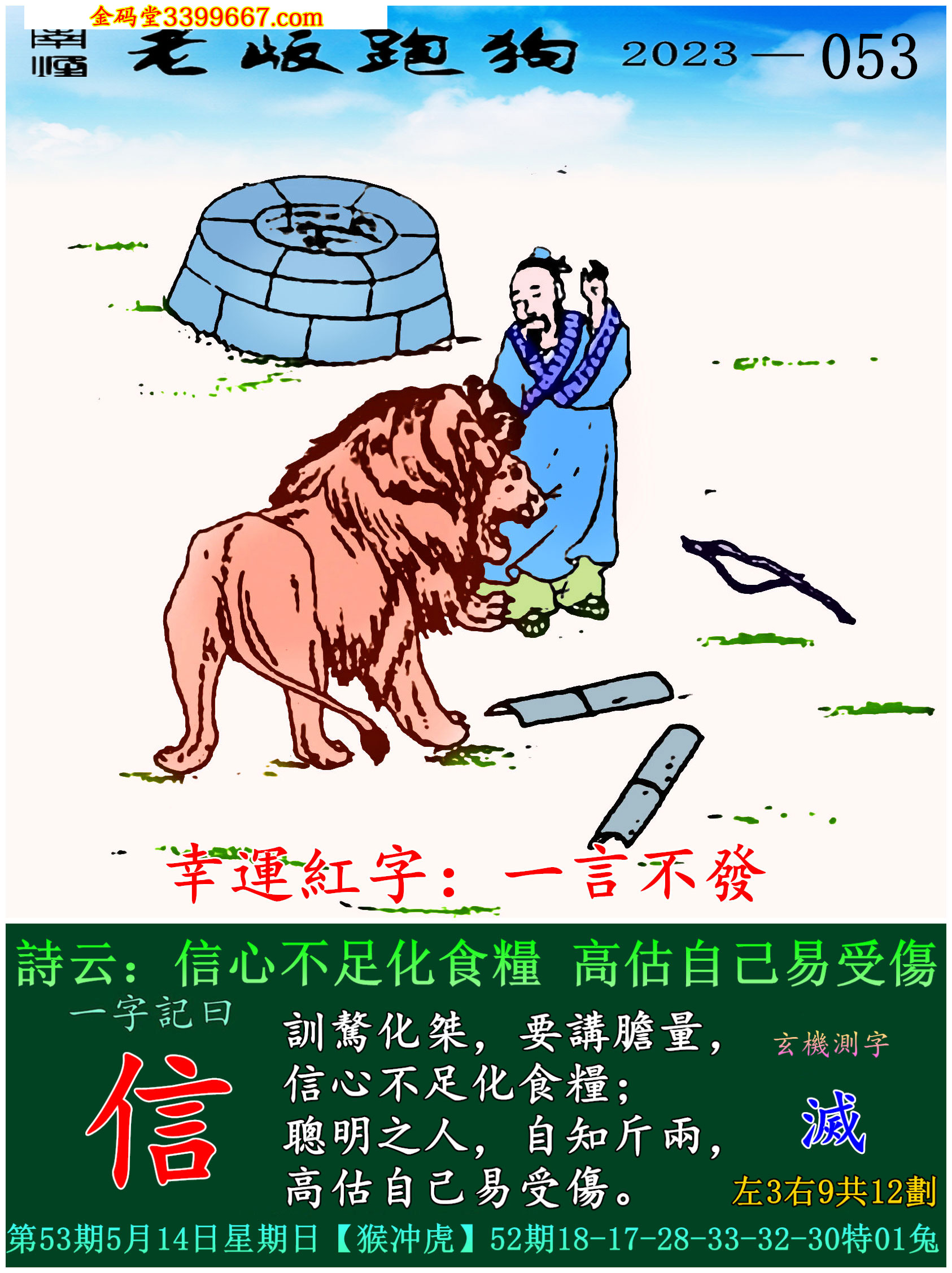主题 : 053期老版跑狗一字記之曰:【信】玄機測字:《滅》