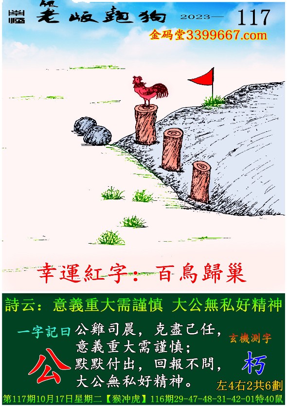 主题 : 117期老版跑狗一字記之曰:【公】 玄機測字:《朽》