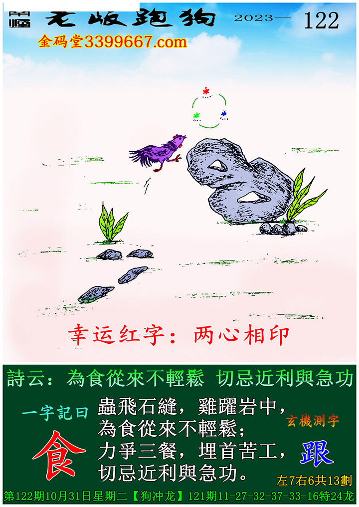 主题 : 122期老版跑狗一字記之曰:【食】玄機測字:《跟》