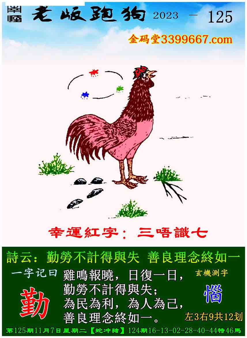 125期老版跑狗一字記之曰:【勤】