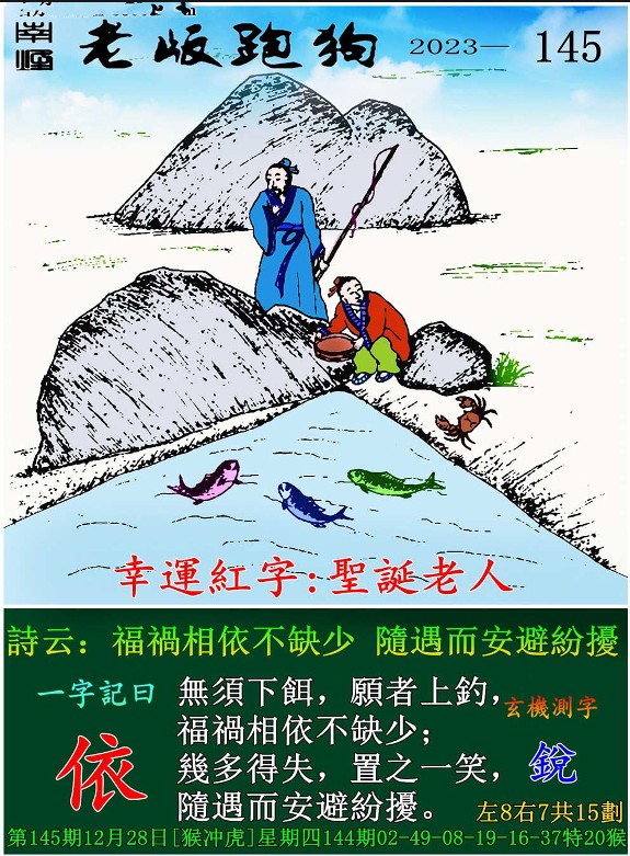 145期老版跑狗一字記之曰:【依】 玄機測字:《銳》