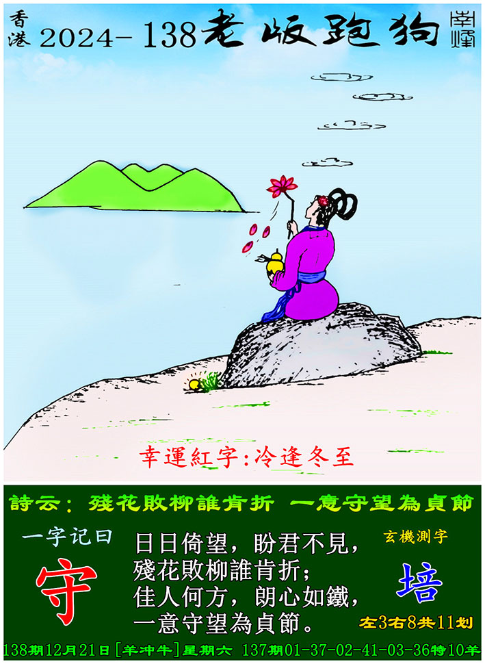 主题 : 138期老版跑狗一字記之曰:【守】 玄機測字:《培》