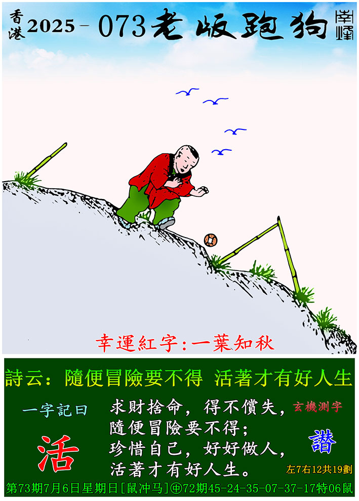 073期老版跑狗一字記之曰:【活】