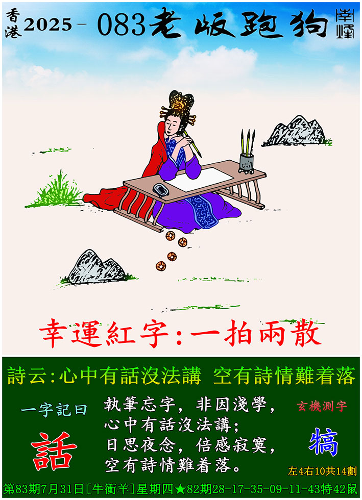 083期老版跑狗一字記之曰:【話】