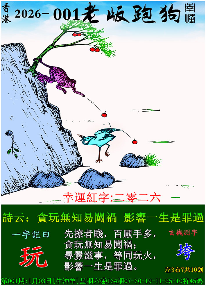 001期老版跑狗一字記之曰:【玩】